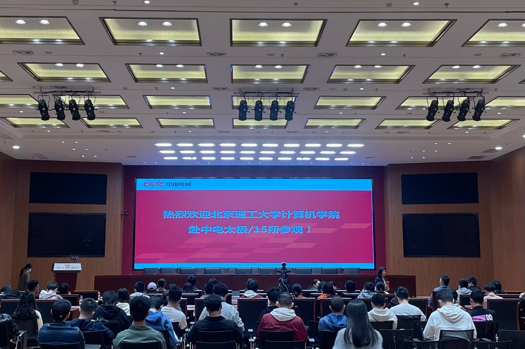 冀春苗首先对中电太极集团发展历程及企业概况做了简要介绍。白建川进一步为师生团队介绍了集团架构、业务分布及在网络信息化建设、军事航天等领域的建设格局和取得的成就,并对人才结构、人才战略培养、人才引育用留计划、激励制度等方面做了详细介绍。李宁向师生们分享了自身在北京理工大学求学及生活生涯的经历与经验,表达了对北京理工大学校友们的期待,并鼓励校友们在未来的求职季中加入中电太极集团。