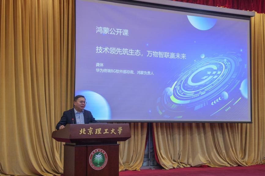 华为终端BG软件部总裁龚体为北理工的学生做了鸿蒙公开课的技术专题讲座,围绕鸿蒙的架构设计、异步并行全栈协同、原生智能场景体验、原生安全生态纯净和极简开发多端部署等方面五个方面详细介绍了鸿蒙操作系统的技术特征和生态进展情况。龚体表示,历史上操作系统多次推动信息产业浪潮跨越发展,当前,正是万物智联换道超车技术革新新机遇,鸿蒙生态的技术创新和应用将带动我国信息技术产业的发展。未来,对于操作系统的人才诉求缺口巨大,我们将需要看到更多的企业和开发者加入进来到鸿蒙生态中来,希望同学们发奋学习,为我国信息技术提升提供强有力的支撑,共同推动鸿蒙生态的发展和繁荣。希望北理工优秀学子们发奋学习,抓住开源鸿蒙万物互联带来的新机遇,在一条充满挑战的路上勇往直前,共同构建鸿蒙生态新的长城、新的里程碑。